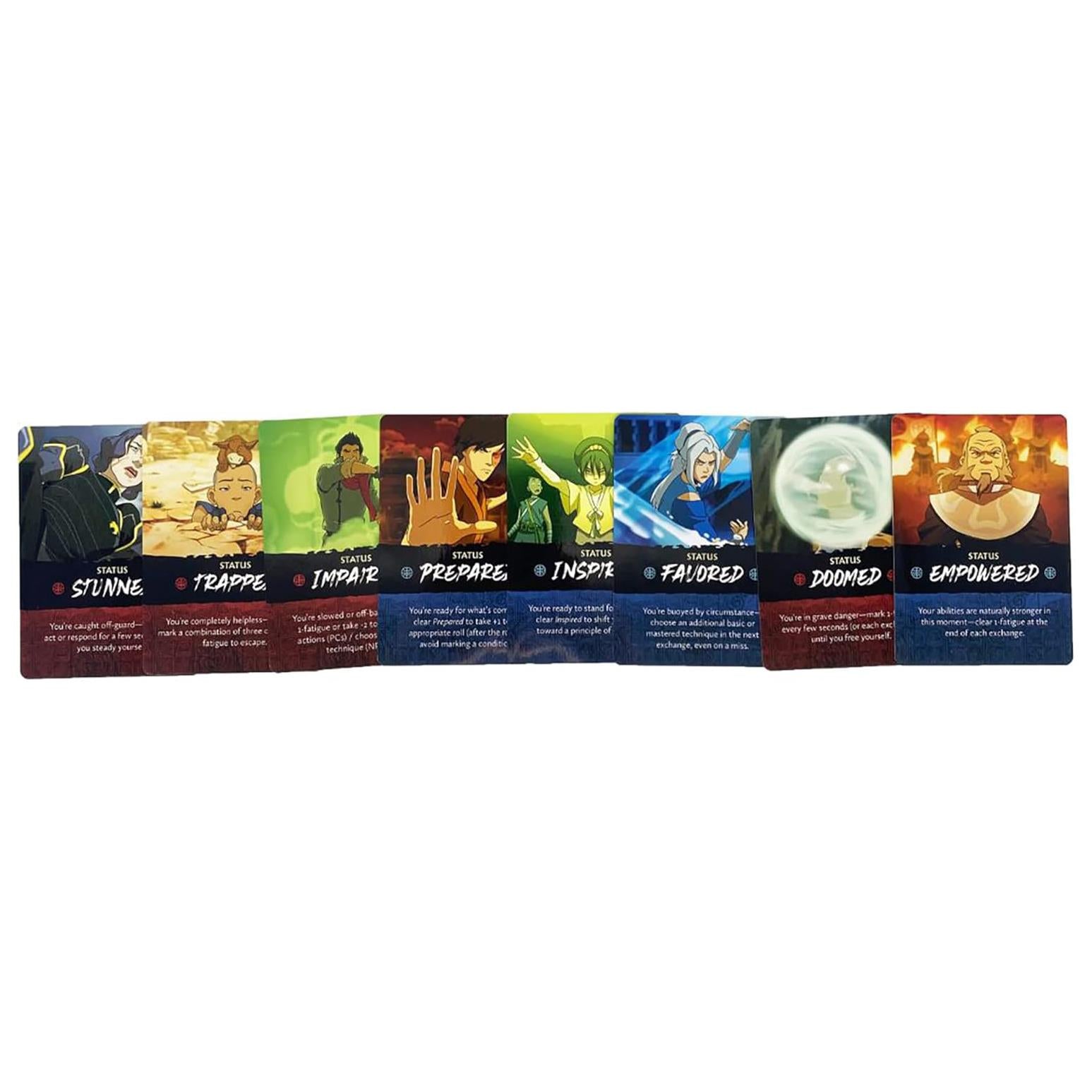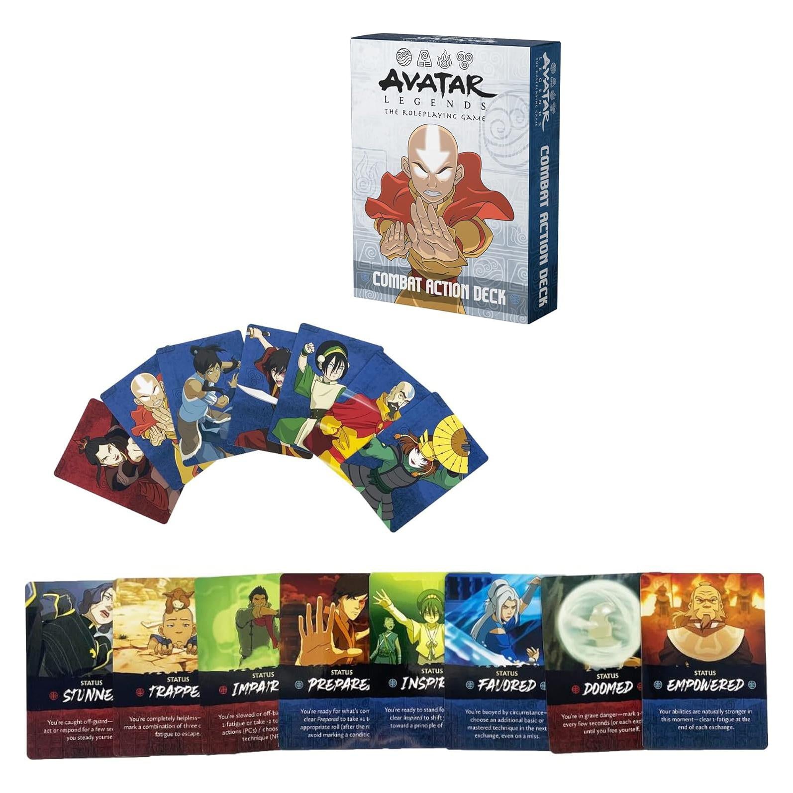 Expansion for the officially-licensed Avatar Legends: The Roleplaying Game: 55 cards designed to make combat exchanges smooth and easy to track. Iconic Character Artwork: Each card showcases artwork of legendary Avatar characters, adding visual appeal to gameplay. Player & GM Stance Cards: Includes nine sets of stance cards for players and GMs, featuring basic techniques for each stance. Status Tracking Made Easy: 28 status cards to keep track of game conditions like Empowered, Doomed, and Favored. Streamlined Gameplay: Simplifies and speeds up combat exchanges, making for a smoother and more engaging RPG experience.