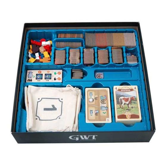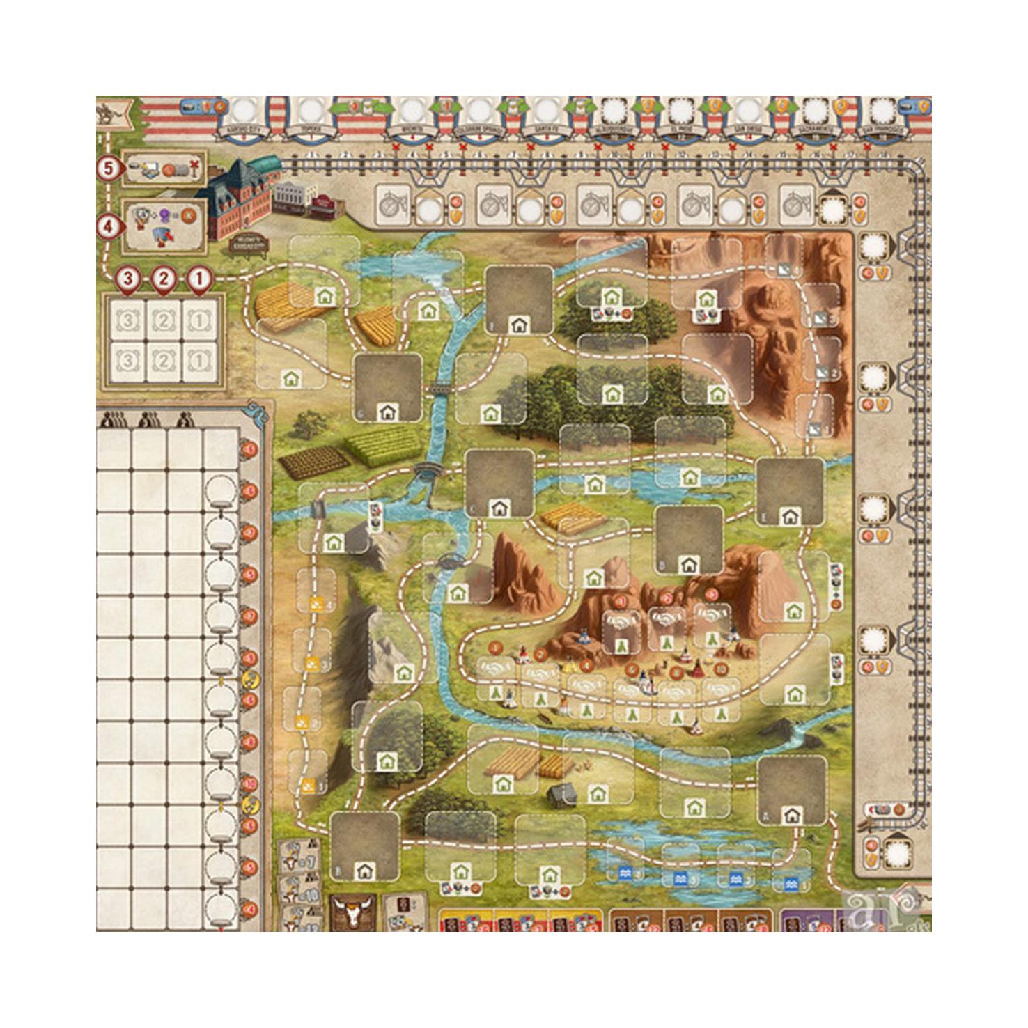 America in the 19th century: You are a rancher and repeatedly herd your cattle from Texas to Kansas City, where you send them off by train. This earns you money and victory points. Needless to say, each time you arrive in Kansas City, you want to have your most valuable cattle in tow. However, the "Great Western Trail" not only requires that you keep your herd in good shape, but also that you wisely use the various buildings along the trail. Also, it might be a good idea to hire capable staff: cowboys to improve your herd, craftsmen to build your very own buildings, or engineers for the important railroad line. If you cleverly manage your herd and navigate the opportunities and pitfalls of Great Western Trail, you surely will gain the most victory points and win the game. The second edition of Great Western Trail includes solitaire rules, making for a player count of 1-4. Second Edition: Remember the old days in the West? Well, the times they are a-changing�! From new solo opponent to incredible landscapes, you won't know where to start. And there is a new herd of cows for you to sell! Great Western Trail is the critically acclaimed game of cattle ranching by Alexander Pfister. Players attempt to wrangle their herd across the Midwest prairie and deliver it to Kansas City. But beware! Other cowboys are sharing the trail with you. We invite you to saddle up! The Changes in the Second edition: Brand New Artwork by Chris Quilliams Solo Mode: A New Challenger in the West Dual-Layered Player Boards Addition of a new breed of cows: The Simmental breed Two new reversible buildings (#11 & 12) Twelve Exchange Tokens, First introduced in the Rails of North Expansion, for more interaction with other players Four new Master Tiles added for more strategy, replayability, and challenges