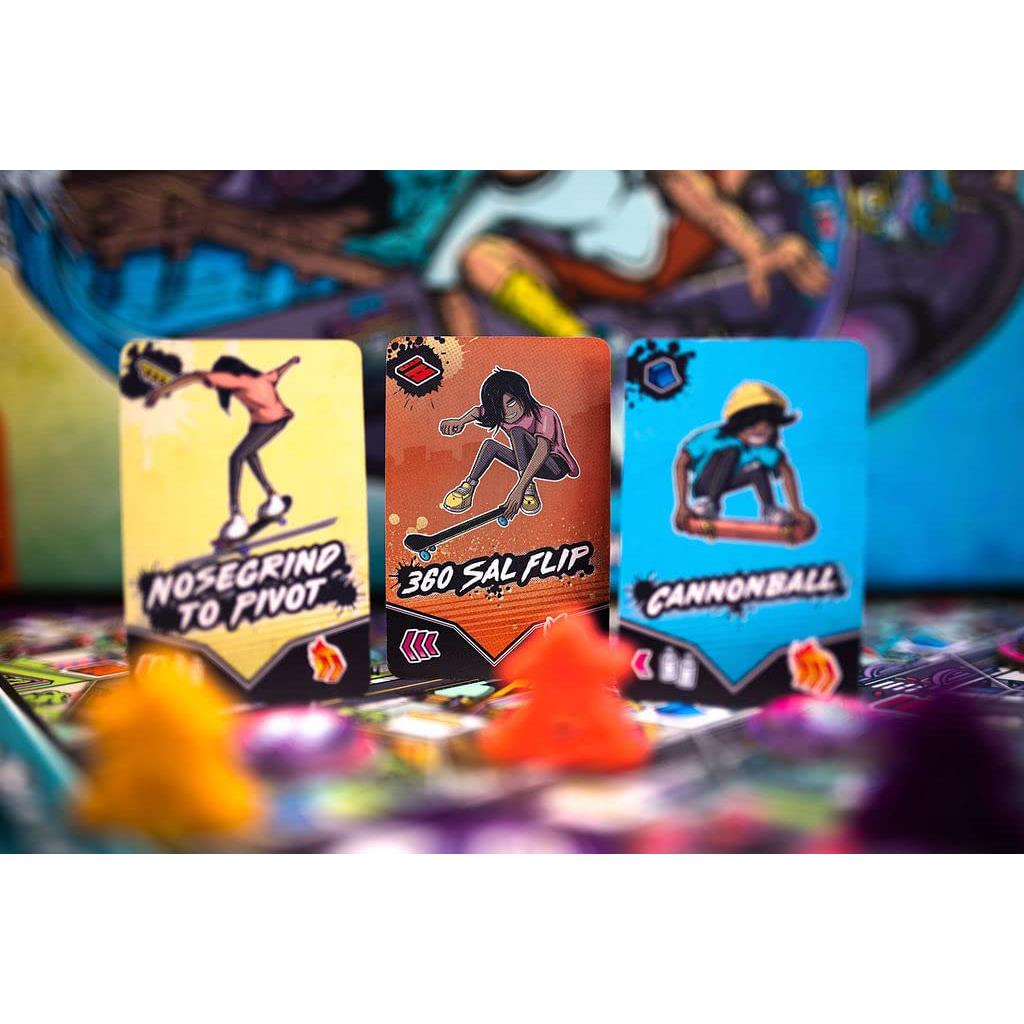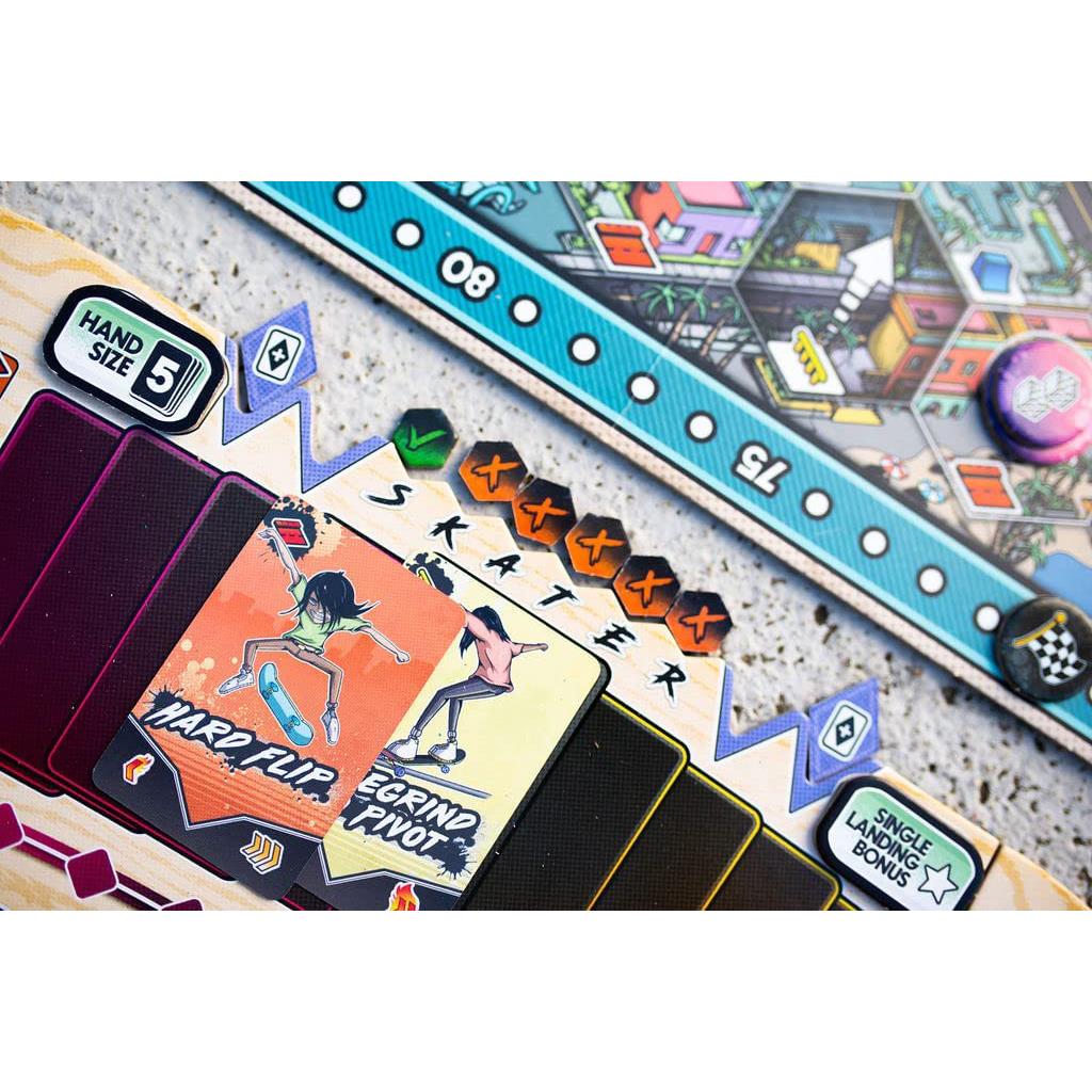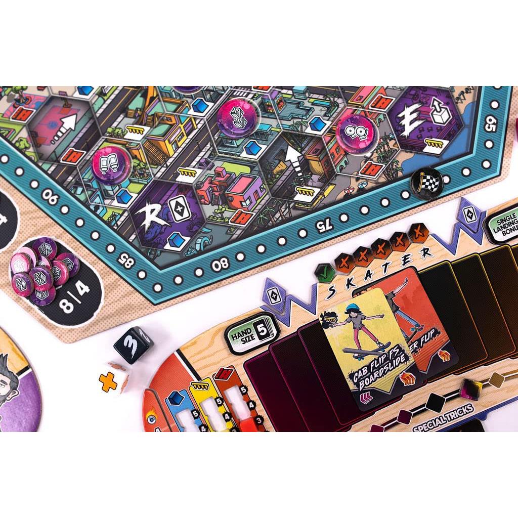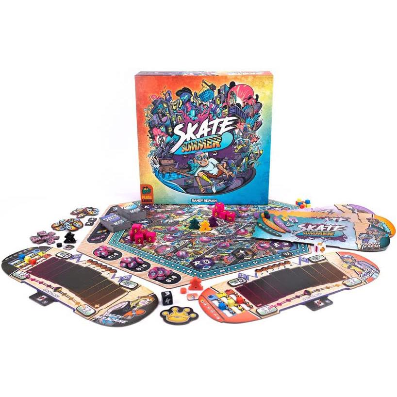 FUN SKATEBOARDING GAME: It's Skate Summer and you're riding the sun-drenched half-pipes of Pelican Park. Locals know there's no ledge too high, no rail too long, and no ramp too dangerous for you and your crew. Can you become the Pro Skater of Pelican Park? STRATEGY BOARD GAME: Leave your mark around town, collecting all the S-K-A-T-E-R upgrades from each corner of the board. Get some big air or roll down a ramp to get there even faster! Do you have what it takes to be the best skater, or will you fade into the sunset? CHALLENGING AND COMPETITIVE: The object of Skate Summer is to score the most points by doing trick combos, collecting goal tokens, and visiting S-K-A-T-E-R locations. If any player's score has hit or passed the endgame token at the end of the round, the game ends and players count up their endgame points. The player with the highest score wins! MULTIPLE PATHS TO VICTORY: The game is played in rounds. Each round has the following phases: Combos, Skills & Points, Moves, and Round End. Nail rad trick combos and show off your skills, but be careful - the longer you stay on your board, the more likely you are to bail! NUMBER OF PLAYERS AND AVERAGE PLAYTIME: This exciting skateboard themed strategy game is designed for 2 to 5 players and is suitable for ages 14 and older. Average playtime is approximately 60 to 90 minutes.