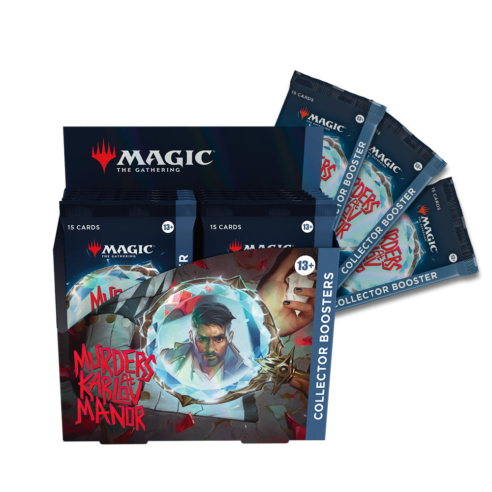 A high-profile case slides across your desk. It’s your job to catch the city’s most notorious cards. Thankfully, an experienced gumshoe like you knows exactly where to look: Collector Boosters. In this lineup, you’ll find Collector Booster-exclusive special treatments and 10–12 Traditional Foil cards in every pack. Each Murders at Karlov Manor Collector Booster contains 15 Magic: The Gathering cards and 1 Traditional Foil double-sided token, with a combination of 5 cards of rarity Rare or higher, 3–5 Uncommon, 4–6 Common, and 1 Full-Art Land cards. Serialized Card in <1% of boosters.