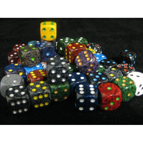 Speckled Dice have been a popular colour range for the past three decades. Speckled dice are made with the same material as the opaque dice resulting in the same quality and density.