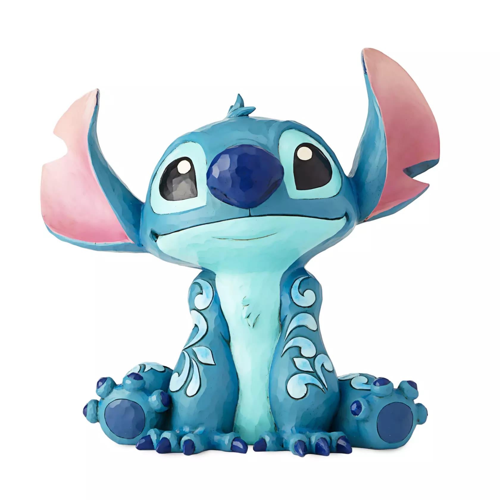 Stitch, the troublesome but lovable alien from Lilo & Stitch, strikes an innocent pose in this big figure by Jim Shore. At 14'' tall, the stone resin design with the look of carved wood is fun for Disney fans large and small. Jim Shore blends Disney Magic with American folk art to create an elegant piece with timeless appeal Fully sculpted big figure Hand painted (unique variations should be expected) Part of the Disney Traditions Collection by Jim Shore Material: Stone resin Approx Size: 38cm H x 23cm W x 26cm D