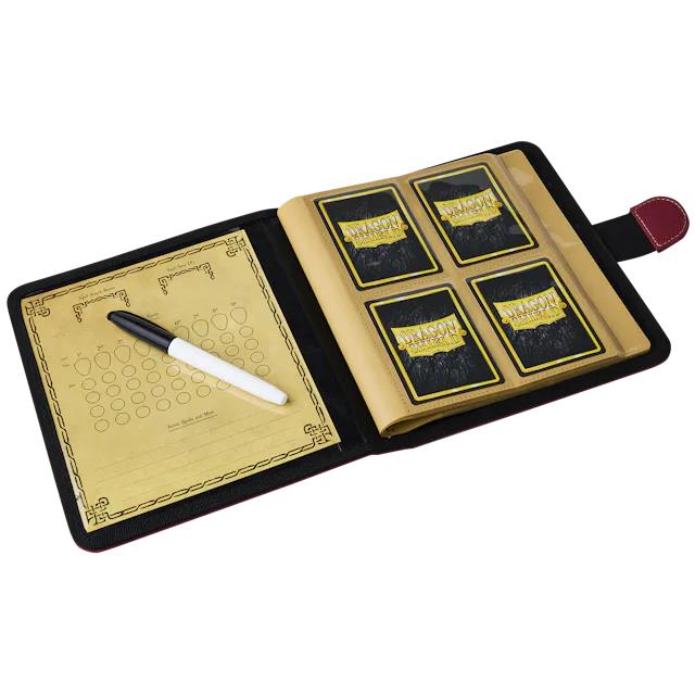 Take your game immersion to the next level! Experience the feel of flipping through an esoteric spell book andchanneling untamed magical energy to unleash a tempest of spells. Stay in control and never lose track of your remaining spell slots with the included 5e spell slot tracker and dry erase marker. The Spell Codex is compatible with official DnD spell cards and accommodates 160 spells. The codex fits neatly inside a Dragon Shield Player Companion. Featuring a rich Blood Red Dragon Skin cover with evocative fiery embossing on the front and spine. Go on some light questing with the included free 5e compatible mini adventure. Features: Secure magnetic clasp Room for 160 spell cards Compatible with official DnD spell cards Dry erase marker and 5e compatible spell slot tracker included Durable and elegant Dragon Skin exterior with golden fiery embossing Without cards the Spell Codex measures 21.7 x 18.8 x 3cm (8.54 x 7.4 x 1.2")