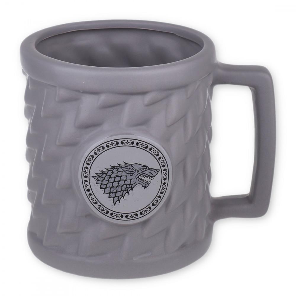 House! Stark supporters can enjoy their favourite beverage in style with this Stark 3D mug, with ridged markings from the Stark wolf emblem around the outside edge of the mug, and of course the Stark emblem on the front. This over-sized mug can hold up to 500ml of liquid, perfect for settling down to watch an episode of Game of Thrones
