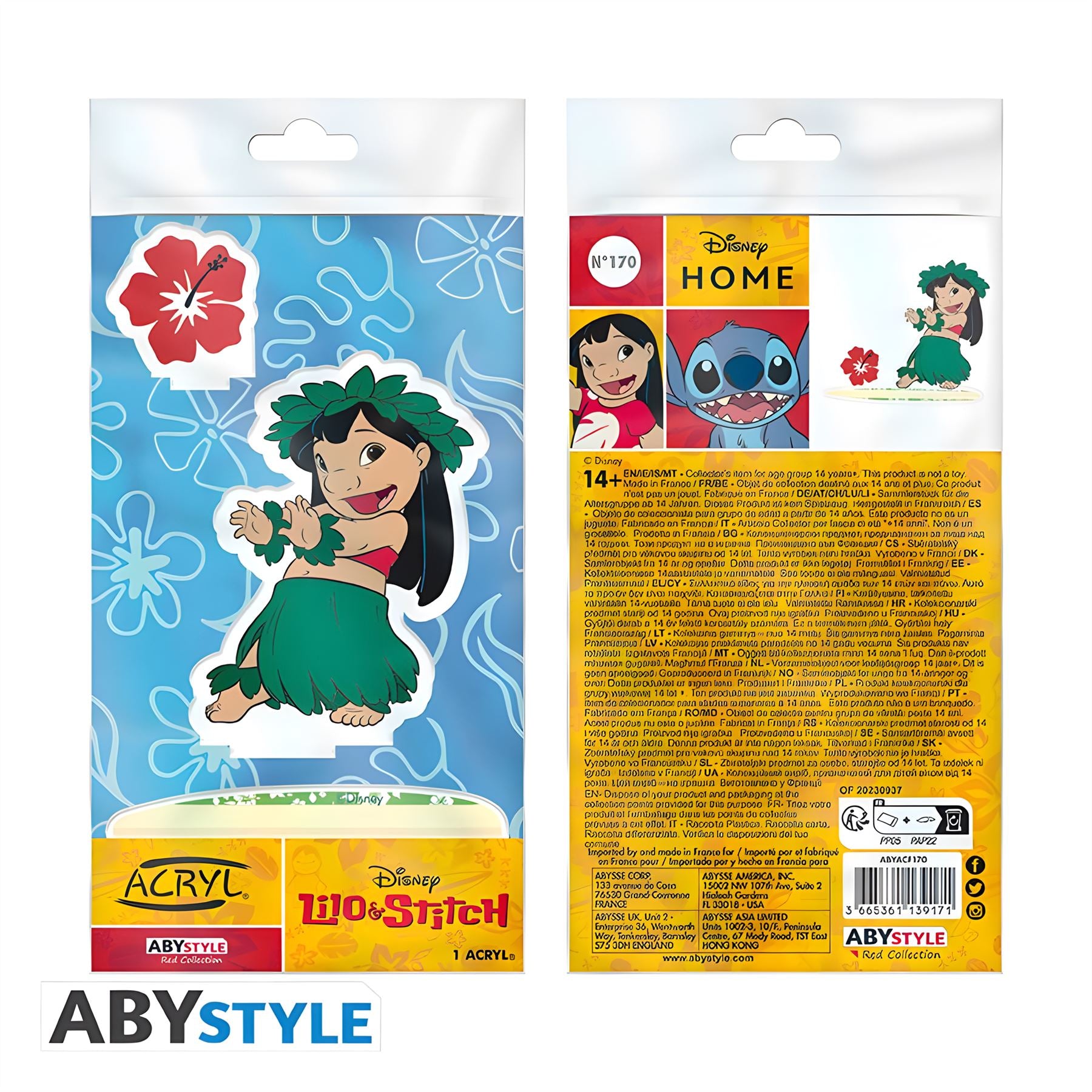 Lilo trained hard to dance. Today's the big day, so put on your flower crown and join her with this Lilo & Stitch Acryl by ABYstyle! 3 pieces to set up: character, emblem/logo and base Character height: approximately 8.5cm High quality printing on acrylic Pieces to be separated from the printed board 100% official item