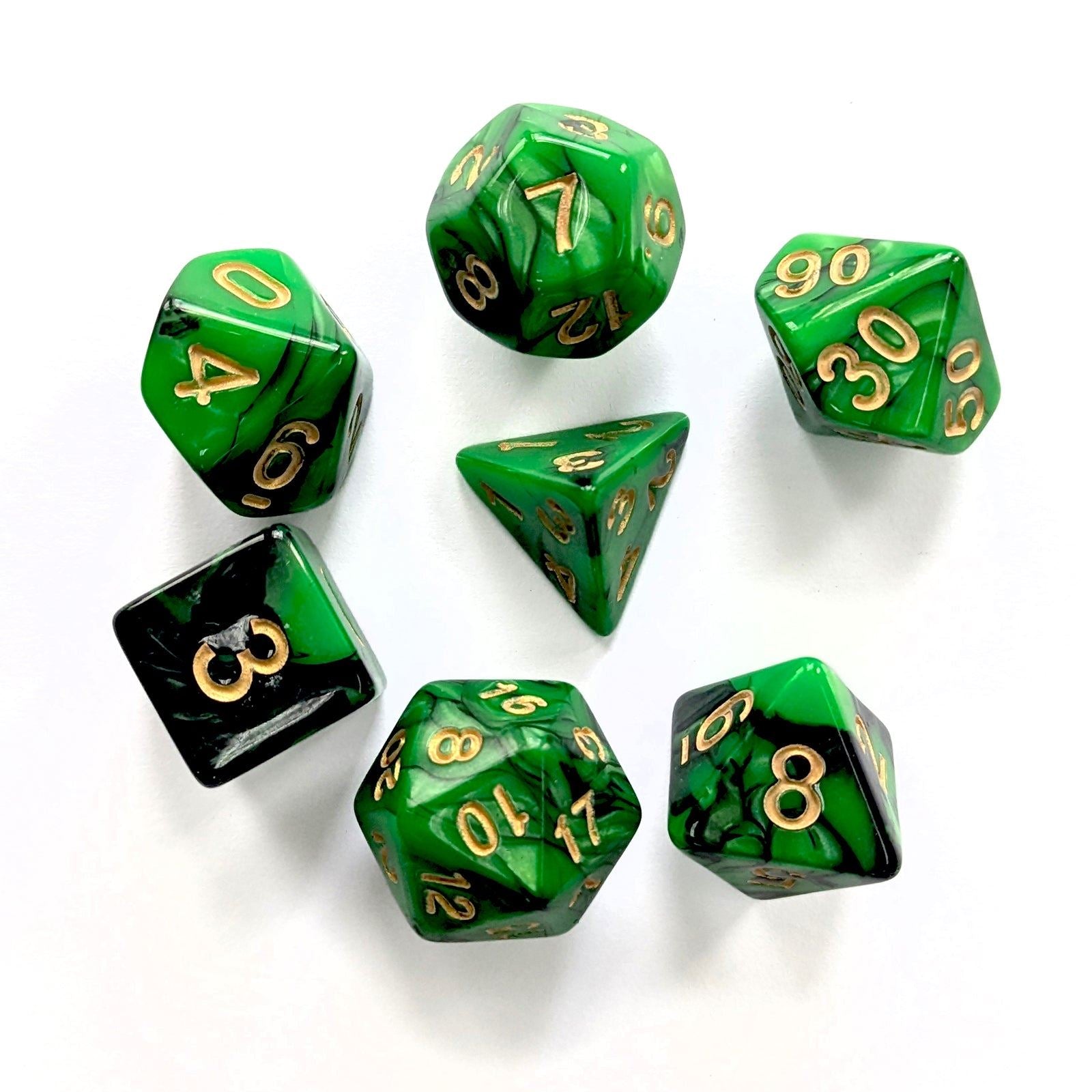 Mythic Loot - Duo Tone Green & Black / Gold Poly Set of 7 Dice
