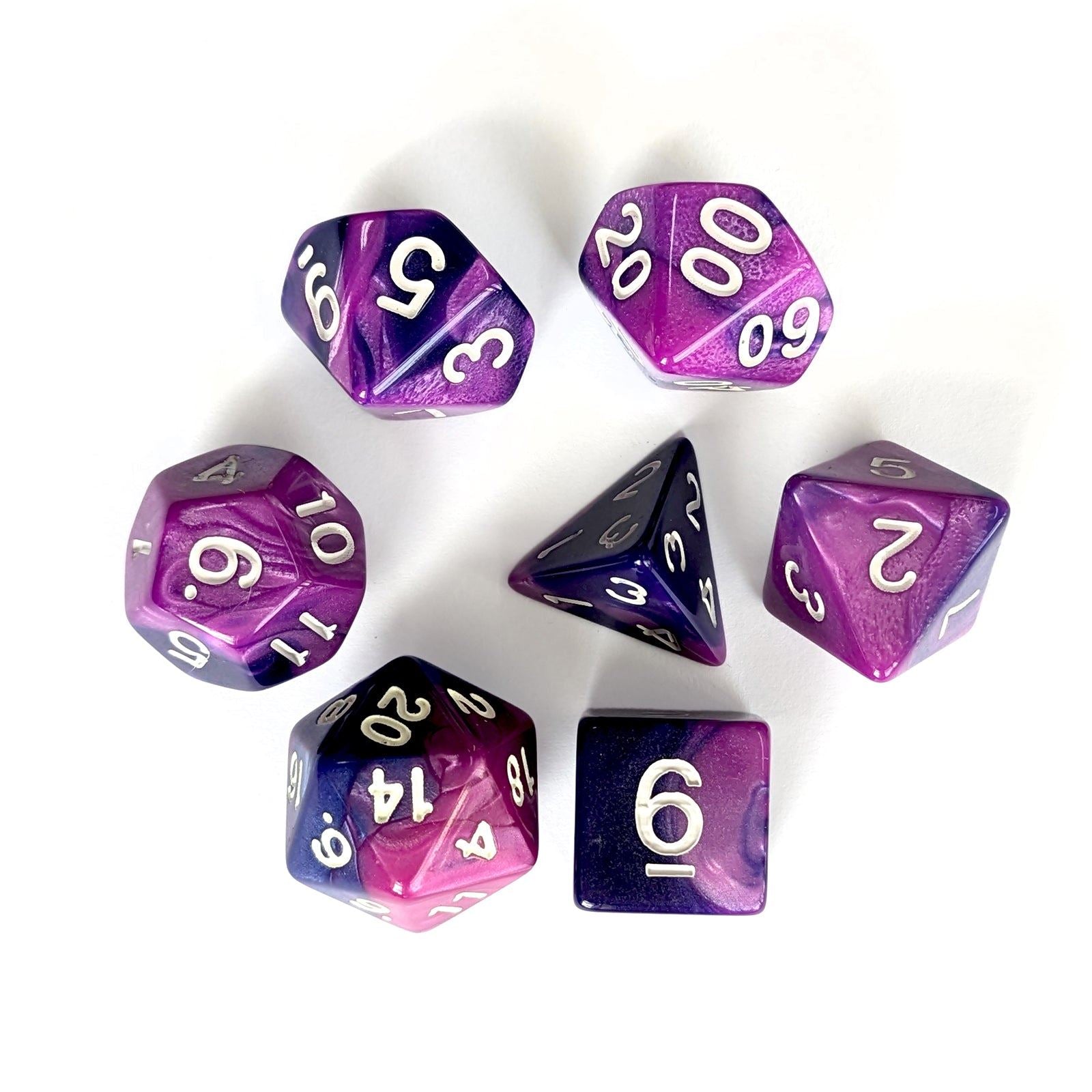 Standard Polyhedral (Set of 7) These are a must-have for any avid player of RPGs like Dungeons & Dragons and Pathfinder.. Each 7 set has 1x d4 dice, 1x d6 dice, 1x d8 dice, 2x d10 (00-90 and 0-9), 1x d12 dice, 1x d20 dice.