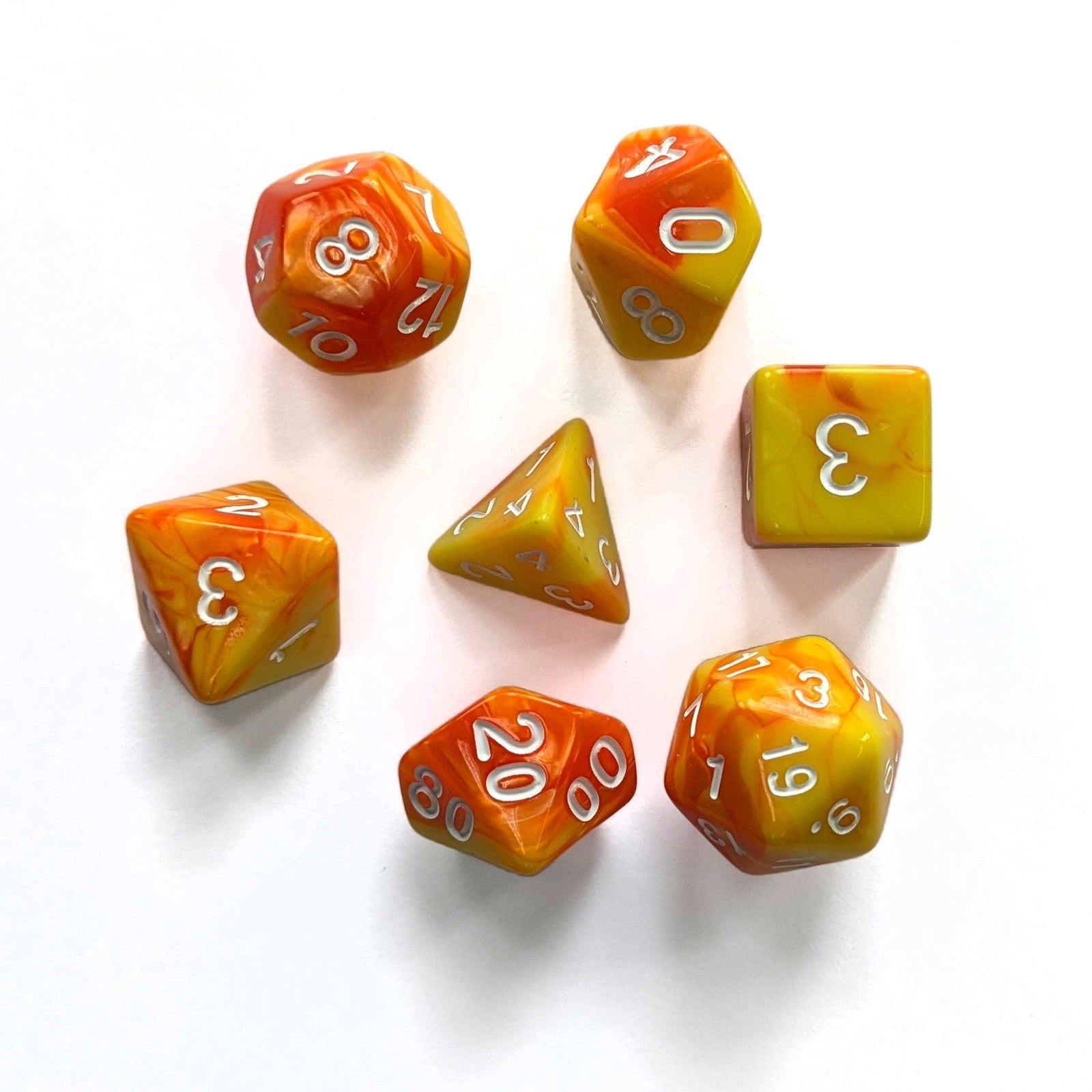 Mythic Loot - Duo Tone Orange & Yellow / White Poly Set of 7 Dice