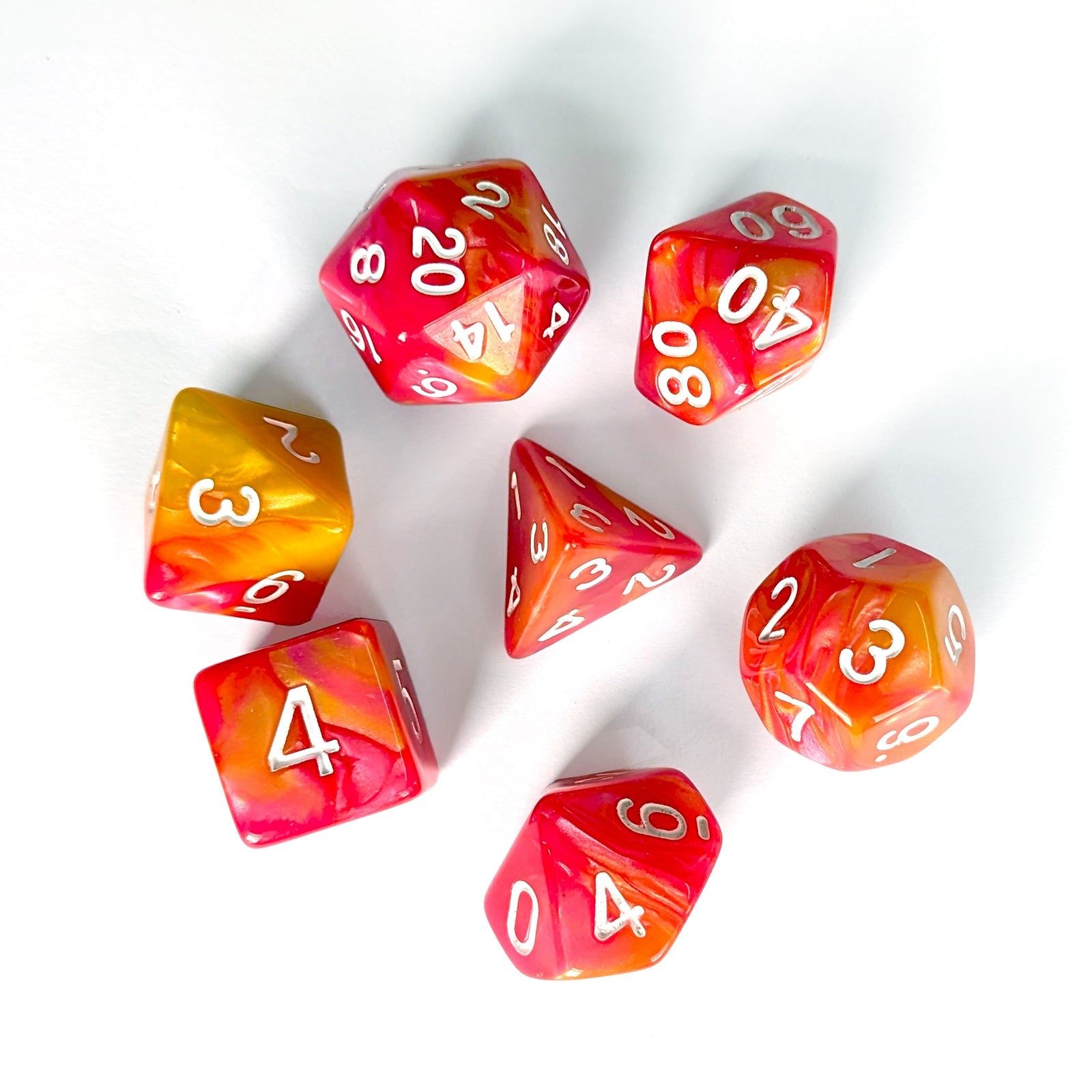 Mythic Loot - Duo Tone Pink & Orange / White Poly Set of 7 Dice