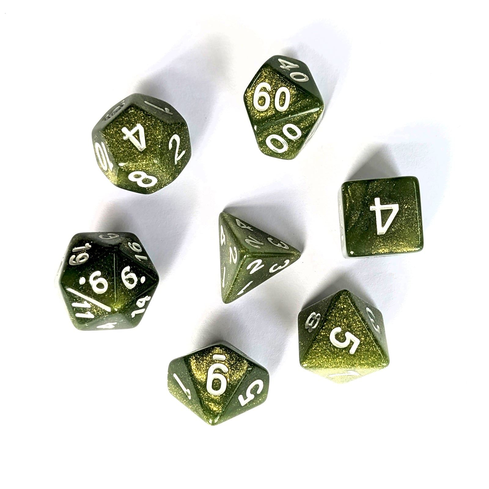 Standard Polyhedral (Set of 7) These are a must-have for any avid player of RPGs like Dungeons & Dragons and Pathfinder.. Each 7 set has 1x d4 dice, 1x d6 dice, 1x d8 dice, 2x d10 (00-90 and 0-9), 1x d12 dice, 1x d20 dice.