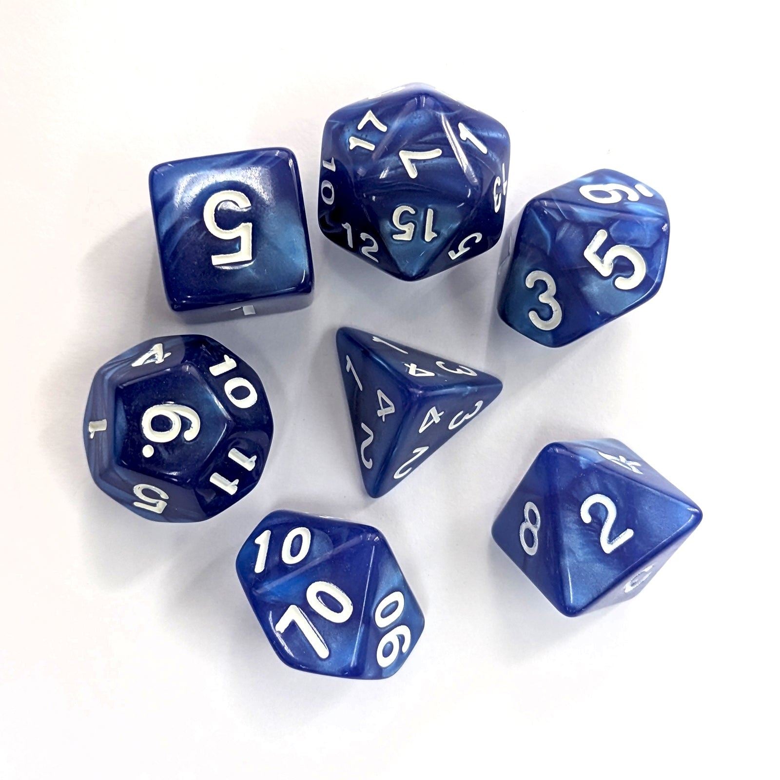 Mythic Loot - Marble Blue / White Poly Set of 7 Dice