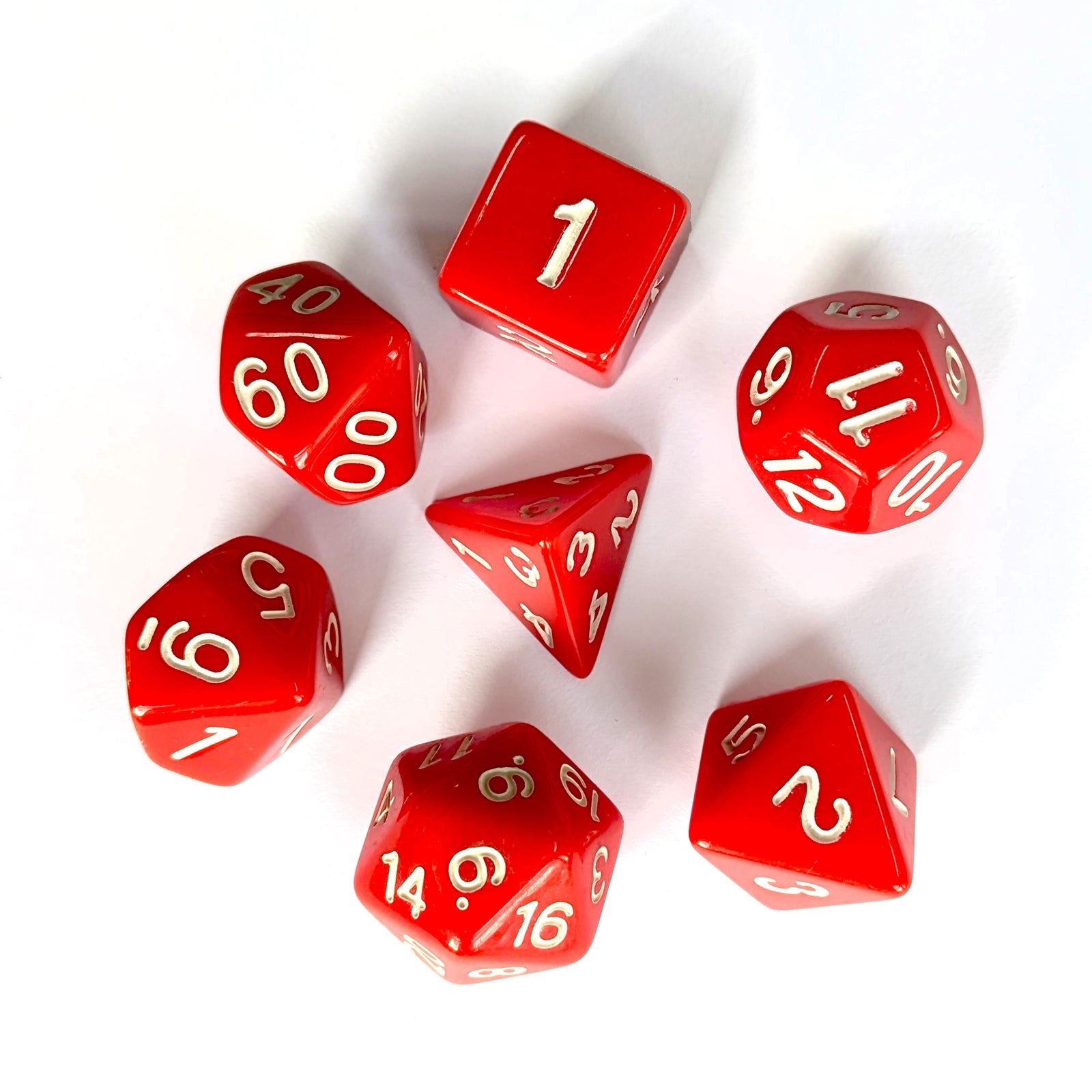 Mythic Loot - Opaque Red / White Poly Set of 7 Dice