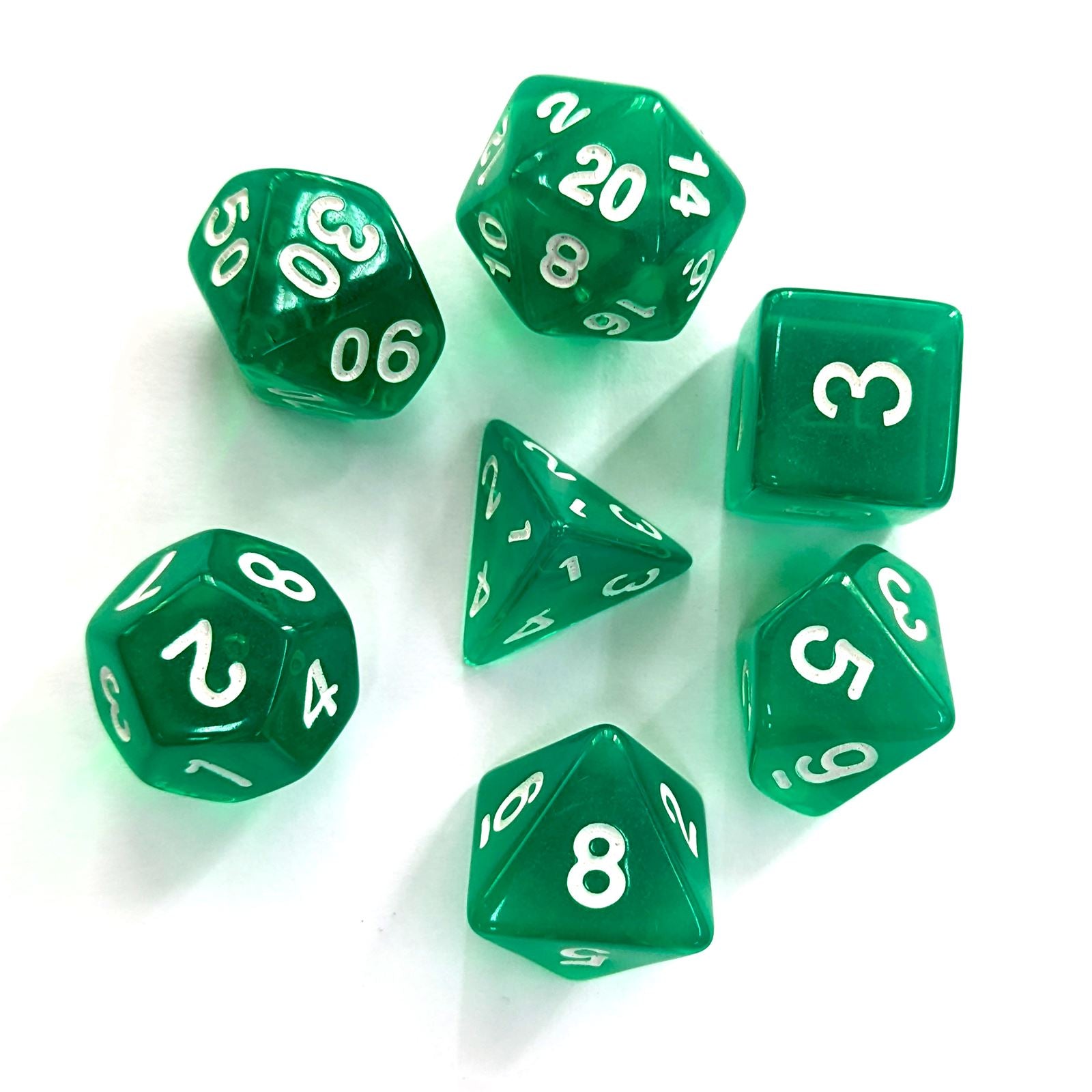 Mythic Loot - Translucent Green / White Poly Set of 7 Dice