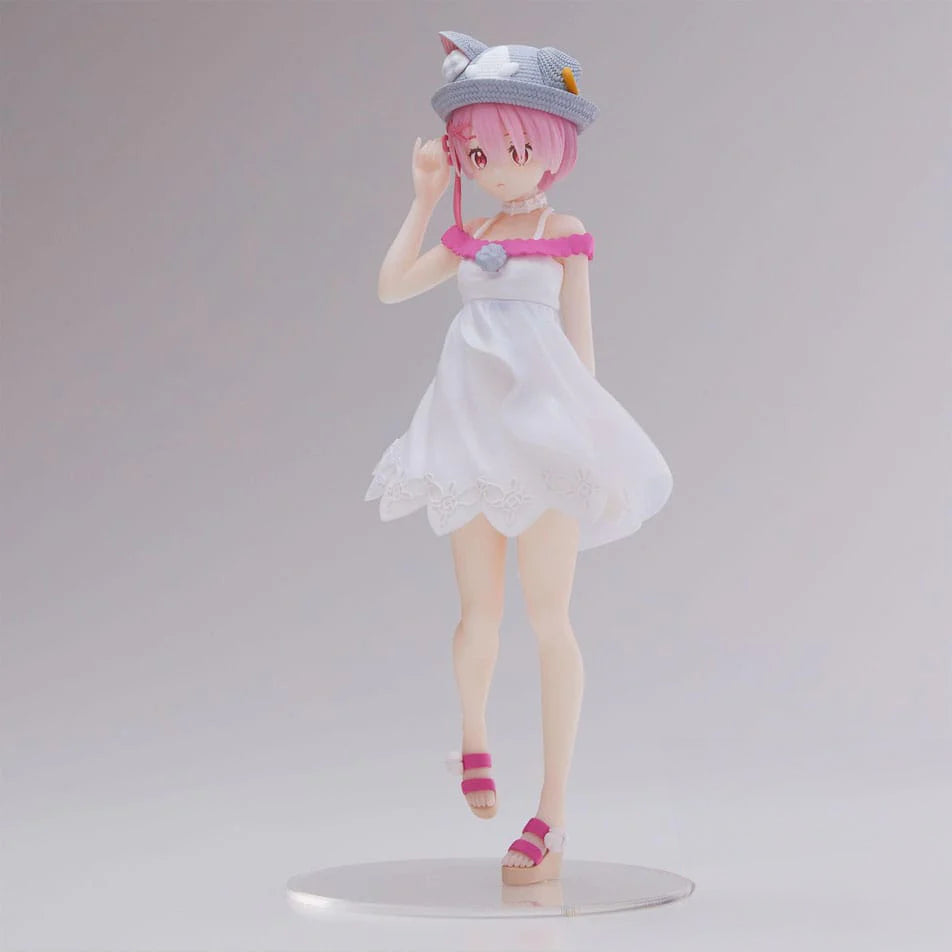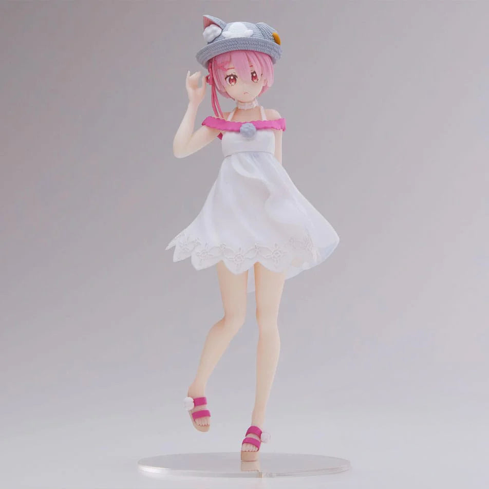 From the popular anime series 'Re:Zero Starting Life in Another World' comes this PVC statue figure of Ram 'Nyatsu Day version' in a cute white summery dress! From SEGA Good's Luminasta range of affordable prize figures! This Re:Zero Starting Life in Another World prize figure stands 19cm tall and comes with a display base in a printed box.