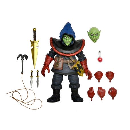 NECA has taken inspiration from the classic Dungeons & Dragons action figure releases and reinterpreted them for the modern collector's market, taking advantage of all of today's advances in technology and tooling to create this Ultimate action figure! What evil assassin Zarak lacks in conscience he makes up for in accessories! The figure is packed with an assassin’s tools of trade, including sword, daggers that fit into sheaths on his belt, potion bottle, grappling hook with rope, and interchangeable heads and hands.