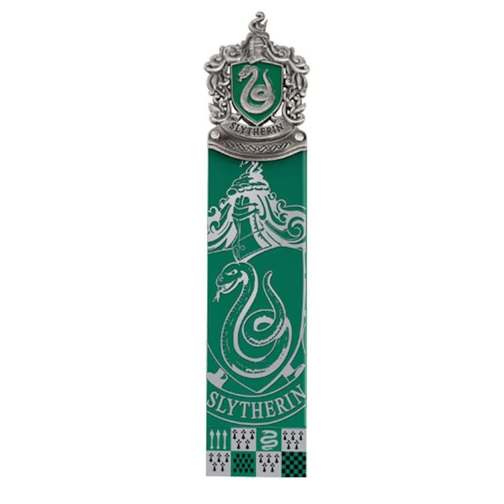 Bookmark with finely decorated crest of the Slytherin house in the Harry Potter film series. The crest is die-cast metal and hand enamelled.