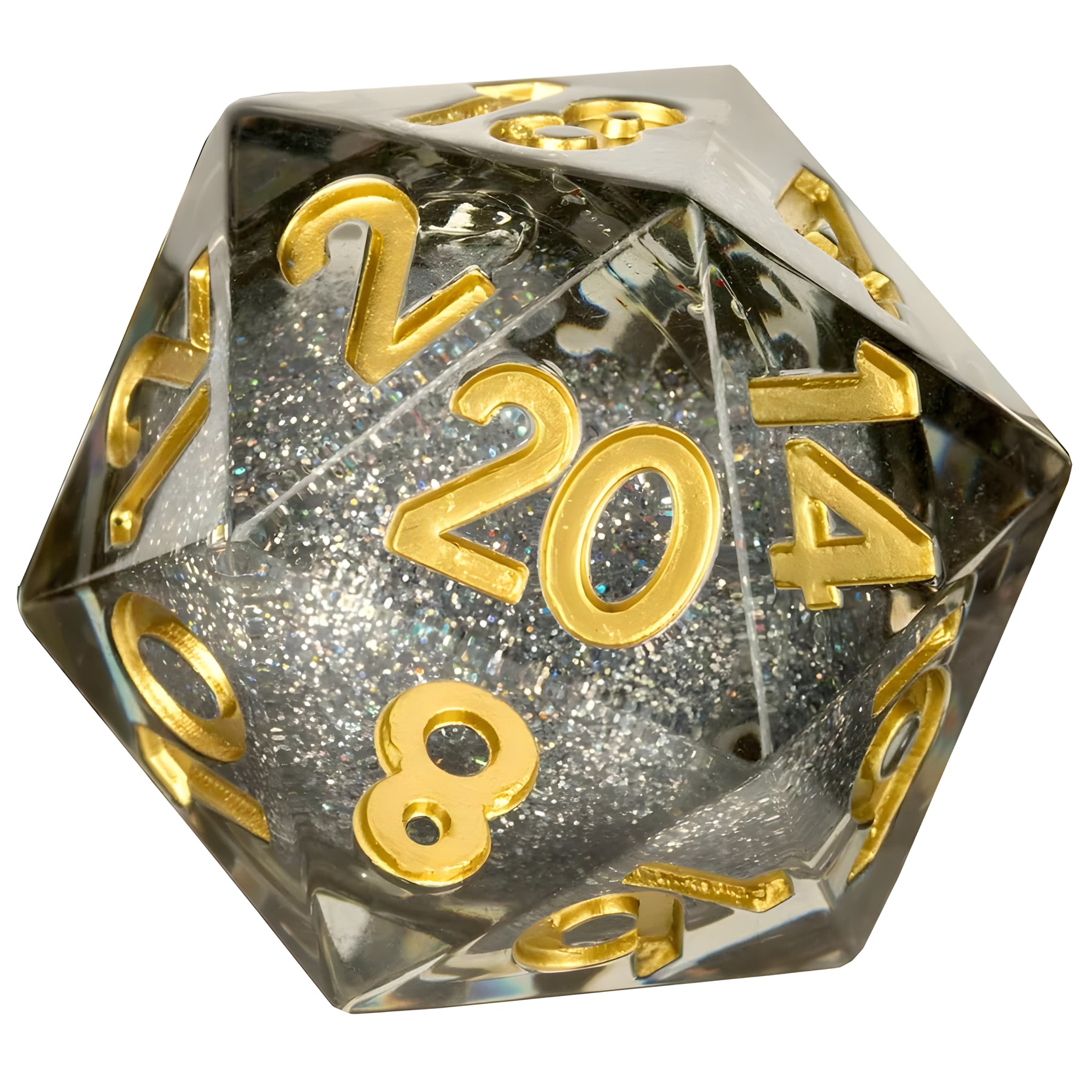 Embrace mystery and intrigue with this enchanting d20 die. Featuring a liquid core that swirls with ethereal colors, it creates a mesmerizing visual as it rolls. Perfect for adding an element of wonder to your tabletop games or as a captivating addition to your dice collection.