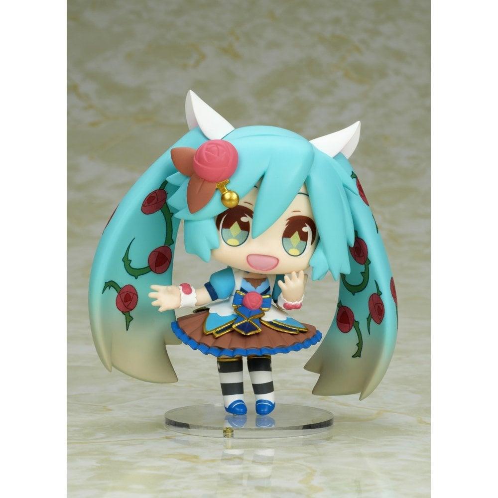 From the "Hatsune Miku" line comes this set of 2 beautiful PVC statues. Each one stands approx. 10 cm tall. They come in a window box packaging.