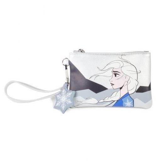 Elsa Ladies silver shiny PU ladies pouch with debossed screen print, and handle with mirror