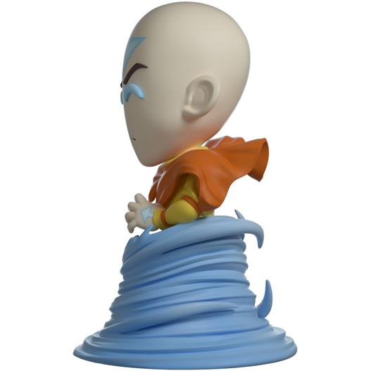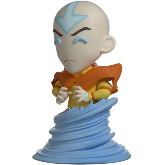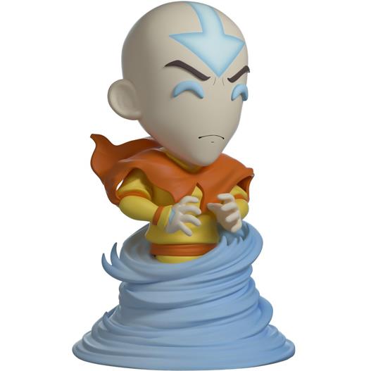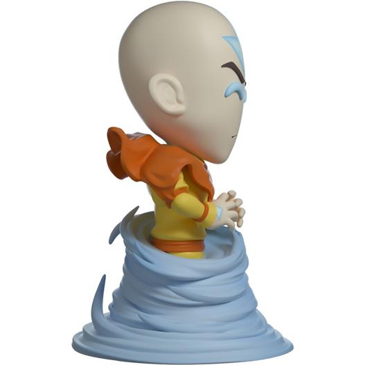 The youngest known Avatar to be told of his status. Floating at 4.8 inches, Aang has reached his Avatar state. With his arrow and eyes a light blue, he is fully focused to bend any element. The figure is sculpted as if there is movement with the wind, his clothes floating around him. The exterior of his double-walled packaging shows Aang inside of an air bubble, in his Avatar State. The interior is the map of the 4 nations. The protective sleeve is a drawing of all 4 elements.