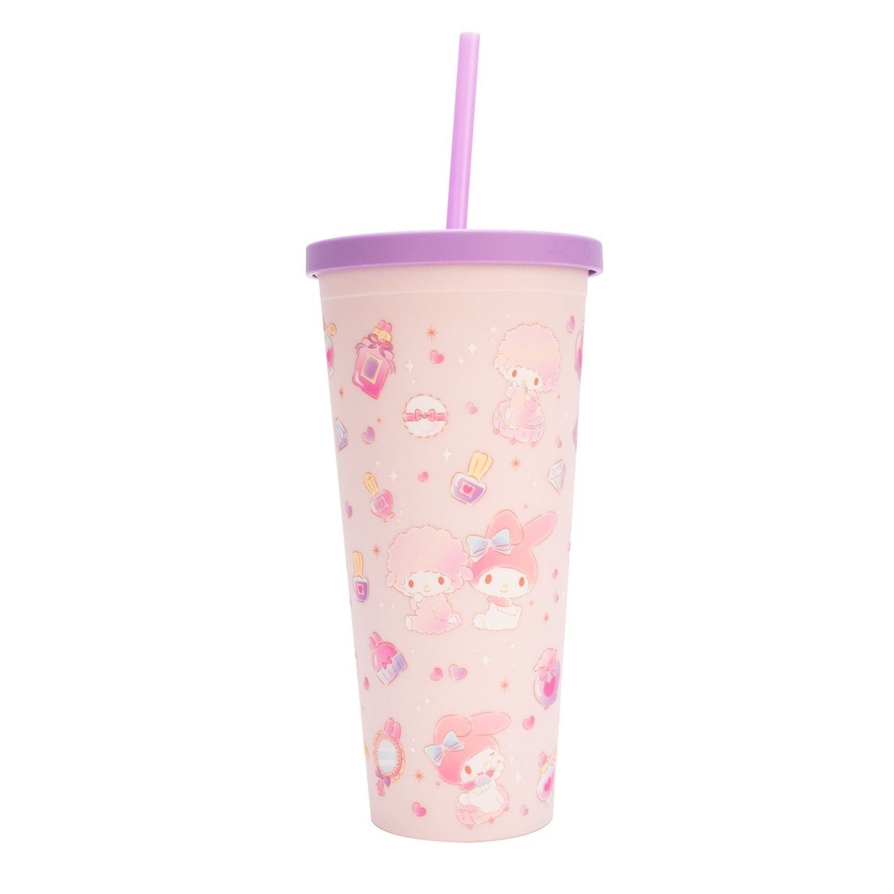 A stylish Hello Kitty My Melody cup with a built-in straw, this accessory is designed for convenient on-the-go use, merging functional drinkware with charming Sanrio artwork.